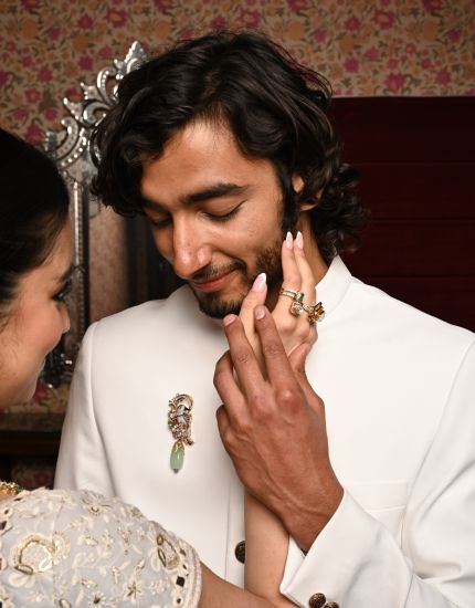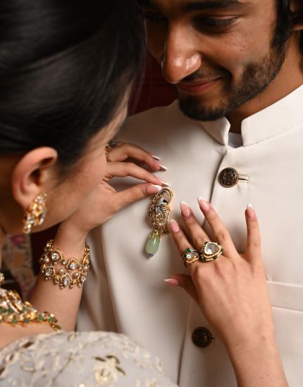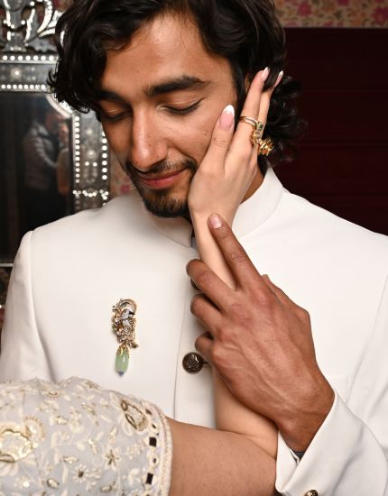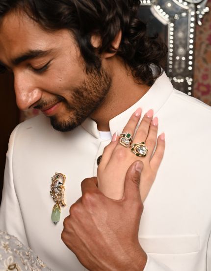 This enchanting brooch is a true testament to artistic craftsmanship and intricate detailing. Designed in the form of an exotic bird, it features all syndicate polkis in an open setting, allowing the uncut diamonds to shimmer with raw brilliance. The bird’s feathers are adorned with delicate enamel work and vibrant gemstone accents, including Zambian emeralds and sapphires, adding depth and color.