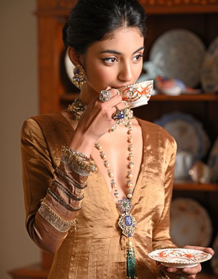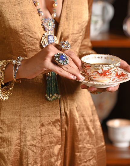 Paired with polki rings, this layered look captures timeless elegance with a hint of modern sophistication.