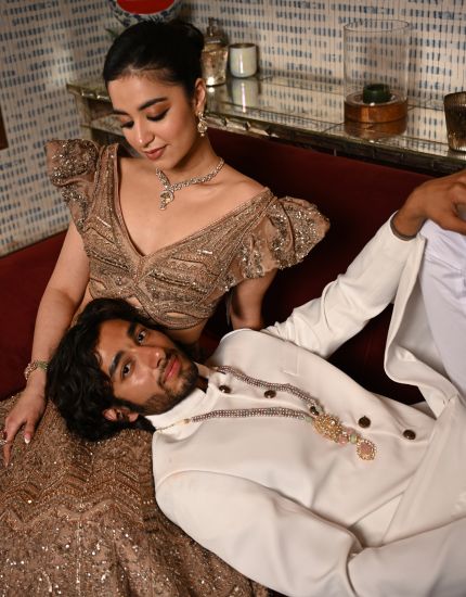 This elegant diamond and polki set exudes refined sophistication with a contemporary twist. The necklace features all syndicate polkis in an open setting, allowing the uncut diamonds to sparkle with raw brilliance. The sleek design is enhanced with brilliant-cut diamonds, creating a fluid and graceful silhouette. The teardrop-shaped polki pendant adds a captivating focal point, with a dangling diamond for added movement and charm.