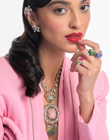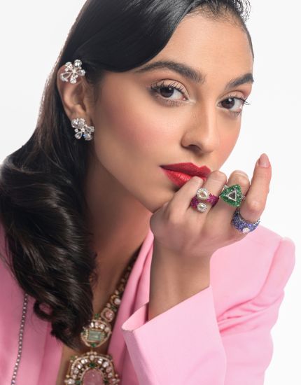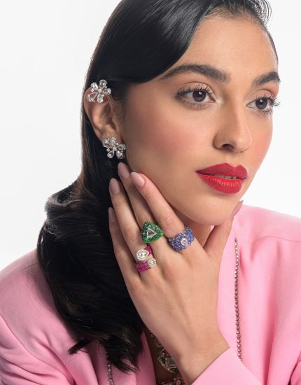 What sets Bejeweled Muse apart is its effortless harmony — where each ring, each stone, each silhouette adds to a canvas of grace and glamour. It’s a look that tells a story of artistic allure and quiet power, made for the woman who doesn’t just wear jewellery — she inspires it.